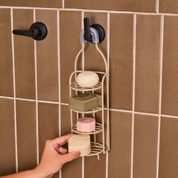 Algumas saboneteiras mantêm a barrinha suspensa, sem contato direto com a água, encostando apenas em alguns pequenos pontos. São ótimas opções!